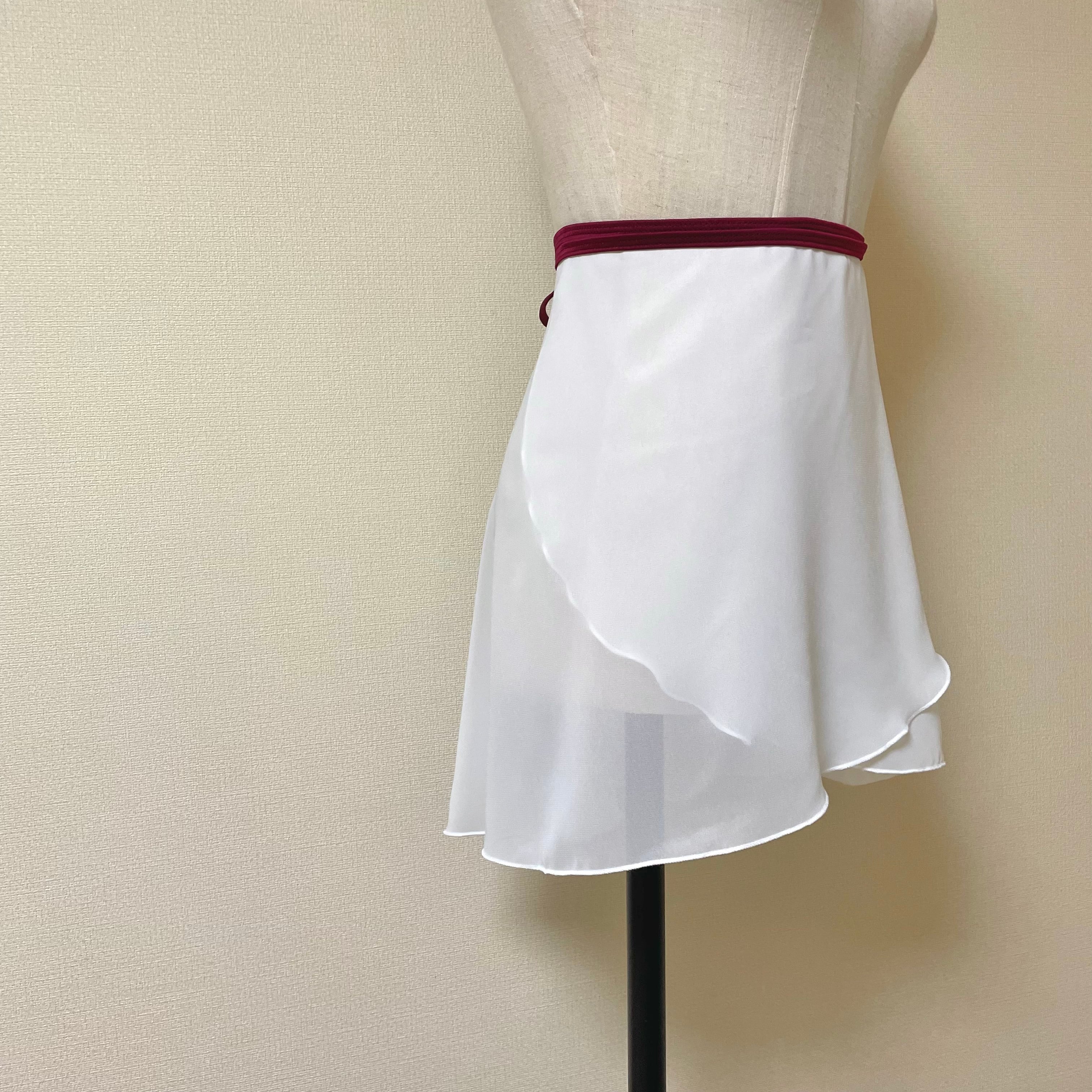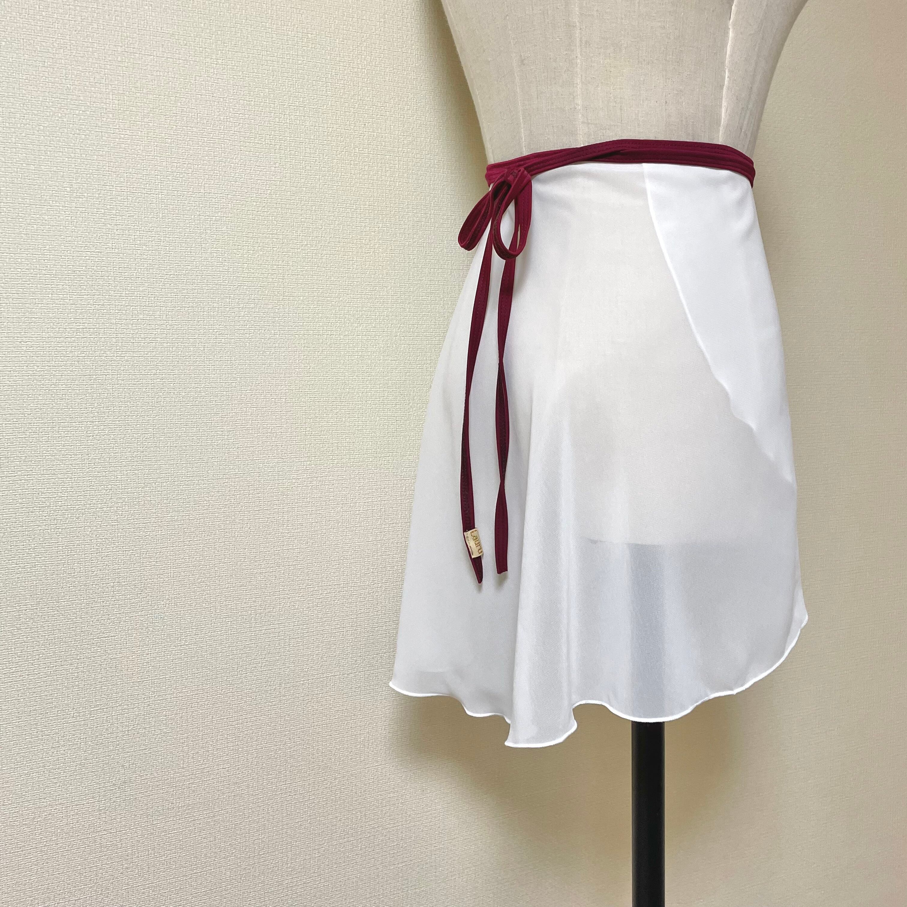 ホワイトの単色巻きスカートにリボンでアクセント。