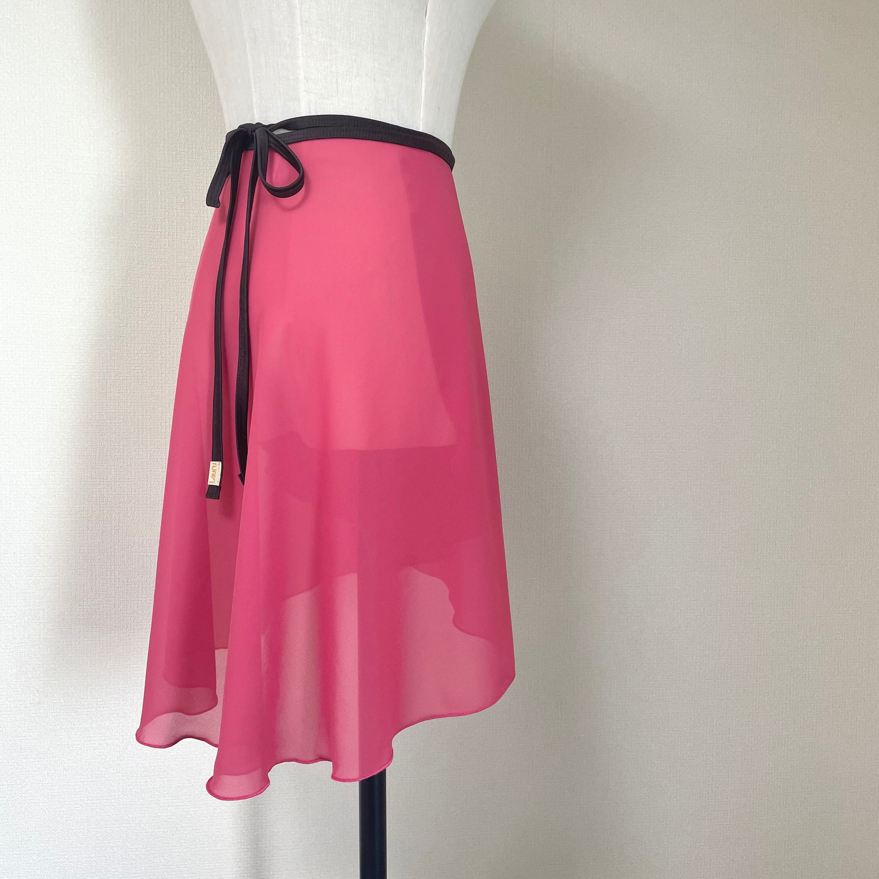 華やかピンクの単色巻きスカートをシックなカラーのリボンでまとめたCherry。